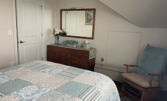 The Upper Rooms is a self contained apartment above our garage with it's own private entrance and deck. There is a large room for the living, dining and kitchen areas. There is one bedroom with a queen bed and a beautiful view of mountains and farmland. Another bedroom has a queen bed and a daybed. There is a third bedroom with a queen size bed. There is an awesome view from the dining area. Experience our beautiful sunrises and sunsets every day. Sit on our deck and enjoy the views and breeze. Watch deer in our yard and nearby fields. You are welcome to use the large swing set in the yard and gather your own eggs for breakfast.About pets:No pets allowed.About checkOut:Check out before 12:00 PM.About children:Children allowed: ages 0-17.About customRules:There is an additional $15 per person per night fee for extra guests over 6 people..About checkIn:Check in after 3:00 PM.About smoking:Smoking is not permitted.Absolutely no smoking allowed inside or outside.About minBookingAge:Minimum age to rent: 25.About events:No events allowed.
