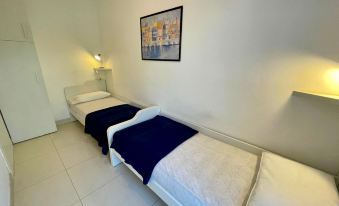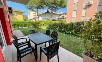 Functional flat located on the ground floor of a one-storey house in a quiet residential area, only 240mt from the sea. The property can accommodate up to six guests. It is formed of a living/dining room with a double sofa bed, an open plan kitchen, a double bedroom, a second bedroom with two single beds, and a complete bathroom with a shower box. It comes with a private garden and patio. One uncovered parking spot is included. There's a shared laundry room for the whole residence. A/C is available at an additional cost (check below).°Photos are generic and representative of the accommodation type (furniture, décor and colors may vary)