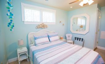 This property is in the best location to walk 2 blocks to the Washington Street Mall and to bike to the beach. We really appreciated the stocked kitchen and bathrooms as they had all we needed. Also the ceiling fans in all the rooms were so nice to have along with the beach tags and the dedicated parking spots. The outdoor showers are really nice too. Such a clean, large property with 3 bathrooms. The owner was very nice as well. They have a beach box with chairs and boogie boards and some sand toys too.