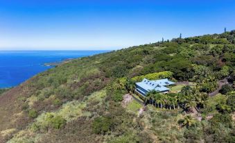 Perched on a dramatic cliffside at 1,000 feet elevation, Maka Nui Estate, meaning Big View, offers sweeping vistas of Kealakekua Bay, Pu Uhonua o Hōnaunau National