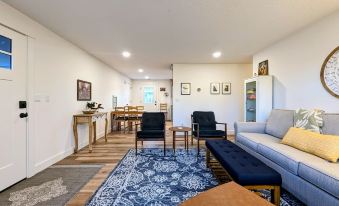 This open-flow home offers a comfortable retreat to relax with family and friends after a day of wine tasting. Be welcomed into a comfortable living room with plenty of seating for all, a flat screen with SmartTV capabilities, and a queen-sized sofa sleeper in the living room permits flexibility for additional sleeping options.