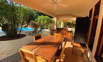 This was the perfect location for our family reunion. Both the main house and guest house were lovely, comfortable, spacious, and well appointed. The pool and backyard setting was simply paradise. The location was ideal. We enjoyed our walks to the local restaurants. Playa Carrillo was just a five minute drive and the beach was kid friendly. Jackie, our host was very knowledgeable about the area, and answered all of our questions promptly. She was super accommodating. Myrtha the housekeeper was most amazing.We look forward to returning here on our next visit to Puerto Carrillo.