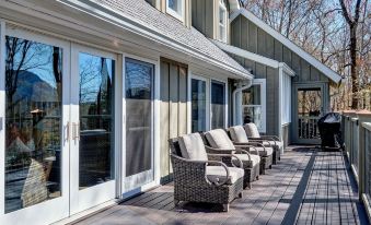 Our expansive deck is where the grilling can happen if you're so inclined. Guests can lounge in the chaises, chairs, or rockers. After dinner move to the fire pit area in the front yard to round out your evening.