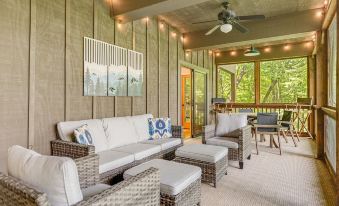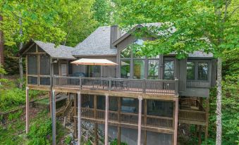 Escape to the tranquility of Sapphire, North Carolina, with a stay in this stunning mountain cabin. Nestled amidst lush forests, this spacious retreat boasts panoramic views of the surrounding peaks. The cabin features 5 bedrooms, 3.5 bathrooms, and a large open-plan living area with floor-to-ceiling windows. This home offers long-range mountain views and modern amenities, including a fully equipped kitchen, a cozy fireplace, wood-burning stove, ping-pong table, and large patios for your family to enjoy and take in those views.