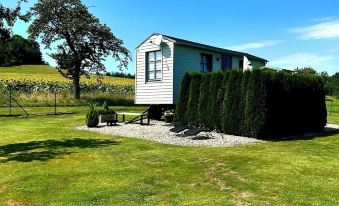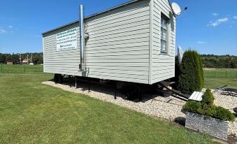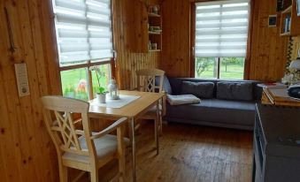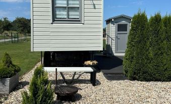 Outside there is a fire bowl, a grill and a terrace with seating. The construction trailer is located on a orchard in a quiet location.