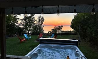 Overlooking the Lake Huron, you will wake up to the most breathtaking view imagined! The property has a private beach to enjoy, with private access to the beach from the backyard and an all-season hot tub.