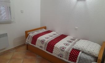 Chambre fraîche (juin), peut être qu’une alèse sur les lits serait pas mal (autant pour l’hygiène que pour la durée de vie des matelas…) terrasse agréable, petit cadeau de bienvenue…