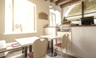 Khách có thể dùng bữa tại quán cà phê của Pension hoặc ghé qua tiệm/cửa hàng đồ ăn nhanh để mua quà vặt và thức ăn nhẹ. Khách có thể dùng bữa sáng kiểu Âu miễn phí hàng ngày từ 8:00 đến 10:00.