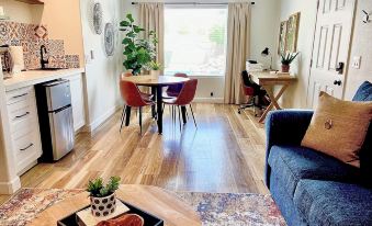 Travelers Paradise is conveniently located in a peaceful established neighborhood just minutes from both Chandler and Gilbert's trendy downtown restaurants and shops. This modern, luxury space can comfortably accommodate 4 guests. You'll enjoy your private suite with all its amenities along with a resort-style patio, yard, barbeque grill, gas fire column and pool. Your private keypad entrance opens to modern furnishings with designer touches. Amenities include a new king-size bed, and sleeper sofa each with crisp white linens, a sparkling clean full bathroom, kitchenette (including: microwave, Keurig, mini-refrigerator/freezer, and bar sink) stocked with coffee and snacks, desk space, free Wi-Fi and cable TV, dining table with a poolside view, and a safety gate leading to the backyard patio and pool.About pets:No pets allowed.About checkOut:Check out before 12:00 PM.About children:Children allowed: ages 0-17.About customRules:Children must be accompanied by an adult in the backyard due to the pool.No guests allowed on premises that are not included in the reservation unless given permission by host.,No noise on premises before 9am or after 10pm per city code.About checkIn:Check in after 4:00 PM.About smoking:Smoking is not permitted.About minBookingAge:Minimum age to rent: 21.About events:No events allowed.