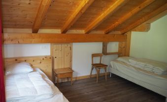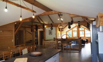 The apartment La Grange, in the chalet La Clairière, offers 180m² of space for 14 people. It is located in the Linga area, 800m from the Linga chairlift and 3.2km from the centre.