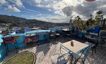 Riad in center of Blue city with amazing Sunset and Sunrise Views from terrace + Though I stayed here for 1 night, would say that this place is really beautiful and is just like right on the foothill of Blue City. You can witness a beautiful Sunset as well as Sunset from the terrace of this place. The rooms are really spacious with confortable bed and at affordable price. The best was the breakfast, lot of variety and was freshly made just like home. Was delicious and warm. Would totally recommend to stay at this beautiful Riad.