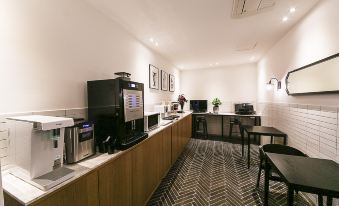 飯店有提供基本的衛生用品,樓下有自助用餐區(有泡麵、吐司、咖啡