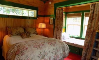 Handcrafted new cabin offers great privacy yet walking distance to the charming town of North Creek for dining and shopping. Enjoy a grassed beach on Hudson River just 400 feet away where you can slip in to swim or kayak. This lovely hand crafted cabin offers pretty woodwork, lovely fabrics, tiny kitchen and nice bathroom. Walking distance to charming little town of North Creek, and two miles to Gore Mountain Ski Center. Nearby white water rafting, rail biking, hiking and shopping ... About pets:Pets allowed: dogs less than 50 lbs per pet (limit one pet total).About checkOut:Check out before 11:00 AM.About children:Children allowed: ages 0-17.About checkIn:Check in after 2:00 PM.About smoking:Smoking is not permitted.About minBookingAge:Minimum age to rent: 18.About events:No events allowed.