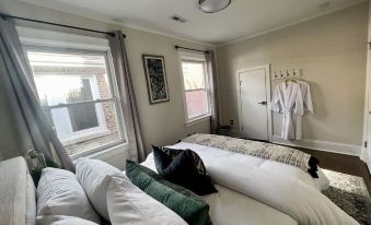A spacious newly remodeled 2 bedroom condo with plenty of sunlight. Restored hardwood flooring and luxury furnishings throughout, this 100 year old beauty is a South Shore gem. The living room boasts rich hues and an eclectic vintage design with special touches including a 55" Smart TV, Marshall Bluetooth Speaker, Bar Cart and plush seating.