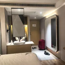 Room was clean with good bedding. Less than 100 meter from Guanyinqiao(vibrant place) metro exit 1. Water bottles were provided sufficiently eventhough we drank a lot. Non- standard amenities such as slippers, razor even alcohol wipes were also provided. I would stay at the same place if I go to Chongqing.