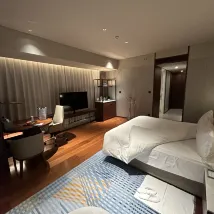 Khách sạn mới, nội thất khá ổn và trang trí đẹp. Tuy nhiên, tiện nghi khá kém. Tiện nghi chỉ là những bộ tiêu chuẩn của Hilton cũ, không có ưu điểm gì đặc biệt mà lại có nhiều nhược điểm. Tôi đã hỏi về điều này bằng thẻ HH Diamond của mình, nhưng lễ tân nói rằng họ không cung cấp phòng suite. Tôi thậm chí còn hỏi loại phòng nào đủ điều kiện, và cô ấy nói không có phòng nào đủ điều kiện. Tôi hỏi liệu tôi có thể được nâng cấp lên phòng suite Ambassador nếu đặt phòng suite không, nhưng họ không thể. Chủ thẻ Diamond muốn nâng cấp nên cẩn thận. Nhân viên lễ tân cũng ổn. Tôi đã đặt phòng cơ bản ngày hôm đó với giá khoảng 950 đô la và được nâng cấp lên phòng Executive.