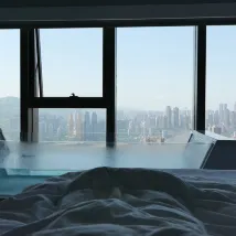 Tầm nhìn toàn cảnh thành phố gần như 360 độ khiến tôi choáng ngợp. Mọi thứ đều sạch sẽ, được trang bị đầy đủ tiện nghi hàng đầu, và thậm chí còn có cả màn hình chiếu phim n*** trong phòng, một điểm nhấn tuyệt vời.