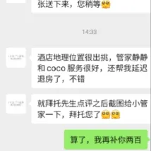Mình ngủ không ngon giấc nên phải ở phòng để bù đắp cho giấc ngủ của mình. Bộ phận chăm sóc khách hàng của khách sạn liên tục hỏi mình đánh giá tích cực và yêu cầu mình copy một đoạn gửi cho Ctrip review.