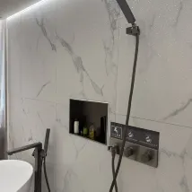 Trong lúc cố gắng điều chỉnh nhiệt độ nước trước khi tắm, tôi phát hiện ra thứ gì đó dính dưới chân khi giẫm lên khăn. Thật ngạc nhiên, gạch lát nền bị lỏng và dính chặt vào lòng bàn chân tôi. Tôi đã nhanh chóng báo cáo vấn đề này với khách sạn qua WeChat. Mặc dù rất cảm kích vì họ đã phản hồi nhanh chóng và đề nghị đổi phòng, nhưng chúng tôi vẫn quyết định ở lại vì đã muộn và chúng tôi chỉ có thêm một đêm nữa.