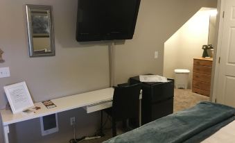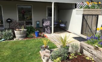 You will enjoy a private entrance to an apartment in the lower section of our home. It has a queen bed with space for an air bed if needed. The property is next to a city park with many miles of walking/ biking trails . Amenities include microwave,coffee pot,TV, Minifridge, toaster oven, air bed if needed. Patio with barbecue and bistro table . You can access the apartment via the lower yard or by side yard