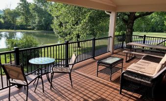 My husband and I along with friends, just returned home from a week at this beautiful rental. The property was exactly as it looked on VRBO. Harvey was a very accommodating host. We enjoyed sitting on the deck and watching the geese and heron on the pond and sitting by the creek. The guys enjoyed fishing in the pond. We are looking forward to our next visit!