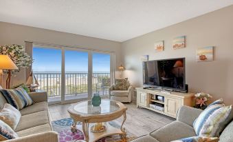 Private balcony in Living Room and Master Bedroom with a view of the ocean and beach, can comfortably accommodate up to 6 guests: 4 adult (master king bed, 2nd bedroom queen bed) and 2 kids (one Queen size sofa bed in living room). Life guards are couple hundred feet away from you. Boardwalk is a desirable community, with relaxing pool to cool down during hot summer season.