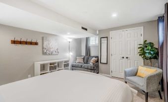 Fifth Bedroom, lower level: Offers a queen-sized bed for restful nights and a small sofa.