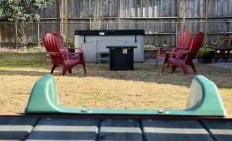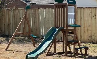 Enjoy a private outdoor haven with a pampering Hot Tub, playset for kids ,BBQ area with out side seating for evening grilling and Fire pit for those delicious S'mores.