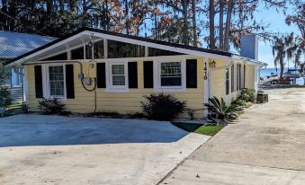 One level home with a larger bedroom and en suite bathroom offering 2 queen beds. The 2nd bedroom is small and private with 1 queen bed. Extra sleeping space offered in the sunroom futon. 2 full bathrooms. Small dining room table. Fully equipped kitchen. Living room and extra sunroom with water view! Large covered porch with a sink out back, Perfect for the whole family!