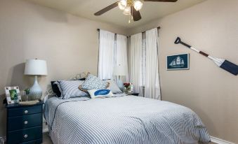 Enjoy this bright, open riverfront retreat on the Guadalupe and perfect for families or friends! Sleeps 8 with 2 beds, 2 baths, and a fully stocked kitchen. Relax on multi-level decks, grill out, or gather around the fire pit. Play cornhole or tic-tac-toe, then hit the water with included floaties and kayak. Minutes from Schlitterbahn, Gruene, and Whitewater Amphitheater. Contact Born Again Vacation Rent for special offers!