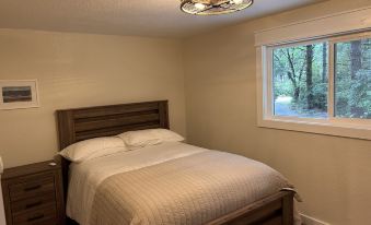 beautifully remodeled, lovely peaceful woodsy setting, and Tim was very helpful with info, fun to communicate with, and a cool host ;)