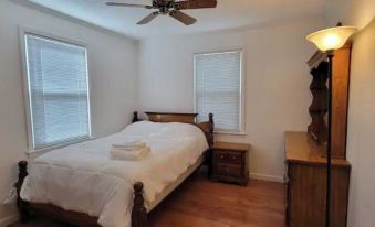 Our guests have access to the entire home which includes 4 bedrooms, 2 baths, living room, kitchen, laundry in the basement, the carport and the small deck in the back.About pets:Pets allowed: dogs less than 50 lbs per pet (limit one pet total).About checkOut:Check out before 11:00 AM.About children:Children allowed: ages 0-17.About checkIn:Check in after 4:00 PM.About smoking:Smoking is not permitted.About minBookingAge:Minimum age to rent: 21.About events:No events allowed.