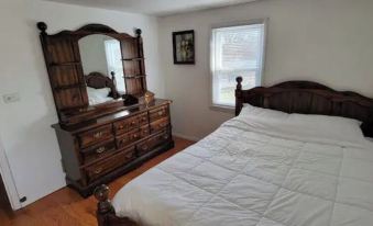 Relax with the whole family at this peaceful place to stay. This 4 bedroom, 2 bathroom home will sleep up to 6 people comfortably, but can accommodate up to 8 people (2 Queens, 1 Full, 1 Twin, 1 Fold out couch). We offer a fully stocked kitchen with dishes, pots, pans and even an instant pot so you can choose to eat at home!