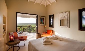 All 6 bedrooms are situated around the courtyard garden of which the master bedroom offers direct access to the porch and swimming pool. All bedrooms have their own outdoor terrace and are air conditioned. In addition, they are also equipped with ceiling fans and window shutters, which pleasantly allows sleeping on the cooling trade winds.