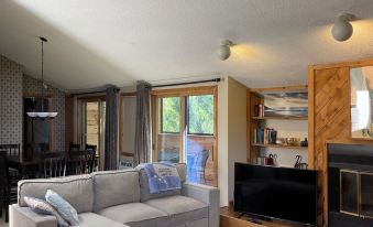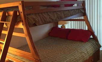 The BEST Location at all of Shanty Creek. Gorgeous year-round condo for a family with up to 5 kids. Bright, sunny, 1200 Sq. Foot unit with view of hill and golf course. Right in the middle of it all! Full kitchen, breakfast bar as well as a dining room. Beautiful natural fireplace, cozy sitting area, and all the fixings for a fabulous stay! Large Master Bedroom with Queen bed, adjoining bath with Jacuzzi tub, lots of closet space, and private deck. The second bedroom has a bunk bed with 2 twins and 1 full bed, also has a deck, vanity, and large closets. The living room has pull out sofa for one more sleeper. 8 guests max. 4 adults or 2 adults and up to 5 kids suggested.