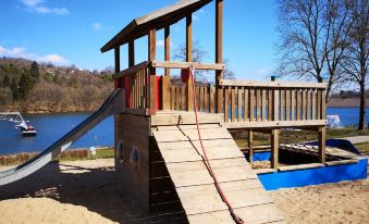 A large playground, a water playground, a water rope garden, a beach volleyball court, the Seascholl with sailing courses and a pedal boat and rowing boat rental are just a few meters away and some are within sight.