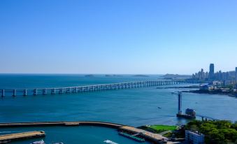走進房間,我直接被窗外的景色驚艷到了!透過那扇大窗户,遼闊的大海和宏偉的跨海大橋盡收眼底,波光粼粼的海面與雄偉的橋樑相映成趣,白天陽光灑進來,房間明亮又温暖,晚上還能欣賞到跨海大橋璀璨的燈光秀,氛圍感拉滿!