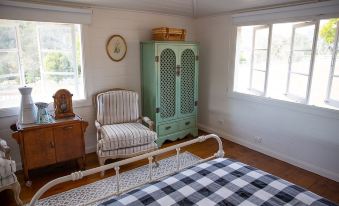 You will be staying in what used to be a functioning milking Dairy Shed. Think of your stay as cottage farm stay meets glamping! The Dairy has been fully renovated and features a beautifully decorated bedroom which has amazing mountain views, an open air kitchen, cottage garden and a rustic but comfortable, detached shower and toilet. The Dairy is situated on a 100acre hobby farm that has animals (sheep, chickens, ducks, horses, pigs and cows) an olive grove of 250 trees, and the Albert River flowing through it.
