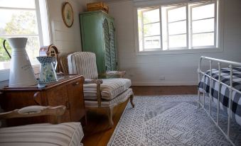 The dairy is has a queen size bed. It will comfortably sleep a family of 4 if you don't mind rooming in together!! There is available on request a port-a-cot and 2 trundles to accomodate little people. Additional families or friends aren’t allowed to camp with your booking, but we can recommend some other awesome farm stays in the street if you want to share the experience with others.