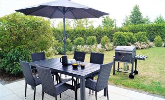 A modern and spacious holiday home with the character of a single-family home. Fully equipped. Arrive and relax in the spacious garden or go straight to the nearby fine sandy natural beach with dunes! and the adjacent forest. Or hop on your bike and explore the beautiful bike paths in the area (e.g. to Travemünde, Boltenhagen). Two football goals in the spacious garden, BBQ on the terrace. Sauna and fireplace for cooler days. Have a nice time. We look forward to seeing you!