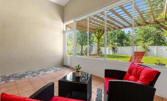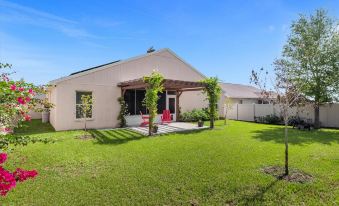 This enchanting house in Haines City is a wonderful retreat for guests. With 3 bedroom including a king, queen, and bunk bed, there's plenty of space for everyone. The 2 bathrooms come equipped with a hair dryer and bathtub for added convenience. Plus, the additional living room space with a queen bed offers even more comfort. It boasts an enclosed lanai and charming wooden pergola. Spacious backyard for children and adults to enjoy. Great for people looking to work from home, relax, or enjoy a family vacation. Book now and enjoy everything this cozy home has to offer.About pets:Pets allowed: dogs and cats less than 50 lbs per pet (limit 3 pets total).Pets should not sit on sofas , chairs.About children:Children allowed: ages 0-17.About smoking:Smoking is not permitted.About events:No events allowed.