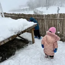 Người lớn trải nghiệm với em bé thì thật bất tiện, nhưng em bé lại rất thích tuyết rơi vào ban đêm và trời hoàn toàn trắng xóa khi tôi thức dậy vào buổi sáng. Nó thực sự giống như một câu chuyện cổ tích. Bữa sáng phải khen ngợi. Gạo nếp lên men đường nâu và trứng rất thơm và ngọt. Sợi mì rất mềm và nhân rất ngon. Bên cạnh là chụp ảnh du lịch, và nhiếp ảnh gia Jason đã chụp những bức ảnh rất tuyệt.