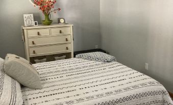 The Burlington Bunkhouse is located a half mile from Deadwood's Main Street in a quiet neighborhood. The trolley stop for hitching a ride downtown is half a block away and the Mickelson Trail for exploring or walking to Main Street is a block away. The quaint home is the perfect get away for enjoying the Black Hills and all that it offers. There is a covered porch to enjoy the great view. The kitchen, dining, and living area are spacious and bright for resting after a long day. The kitchen, dining room, and living room are one open area with a counter for additional seating, along with a dining room table for four. The appliances are all full sized. There are two TV's. One in the living room and one in the bedroom with cable access. There is a walk in shower with grab bars by the toilet. A stackable washer and dryer is available for use. The bedroom has a queen size bed with an adjustable base and large closet. There is a queen size sofa sleeper in the living room. Grill available.About pets:No pets allowed.About checkOut:Check out before 10:00 AM.About children:Children allowed: ages 0-17.About checkIn:Check in after 3:00 PM.About smoking:Smoking is not permitted.About minBookingAge:Minimum age to rent: 18.About events:No events allowed.