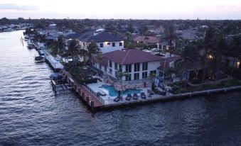 Relax in the lap of luxury at this luxurious waterfront home! You will be mesmerized by the mega yachts that cruise by the stunning backyard! The house includes: 4 bedrooms, 3 1/2 baths, living room with 16’ floor to ceiling windows, wet bar with sink & wine refrigerator, den with fireplace, gourmet kitchen with top of the line appliances, gym with full equipment, outdoor lanai, and sound proof movie theater with 6 recliners. Entertainment includes 8 TV's and Sonos surround system, both indoors and out. The backyard features a L-shaped heated pool with waterfall, stone grotto, separate hot tub & 245 feet of waterfront. Backyard also includes over 100' dock space with ample lounge and eating areas in pool area. Home also features a 3 car garage and lush tropical foliage. The home is located approximately 1.5 miles from the beach. I’m happy to answer any questions. Contact me @732-233-6856.About pets:No pets allowed.About checkOut:Check out before 11:00 AM.About children:Children allowed: ages 0-17.About customRules:The boat & wave runners are for the owners use only..About checkIn:Check in after 4:00 PM.About smoking:Smoking is not permitted.About minBookingAge:Minimum age to rent: 30.About events:No events allowed.
