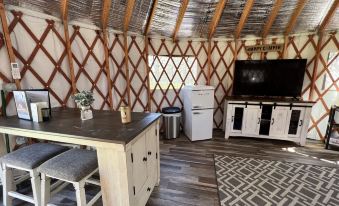 Pet friendly glamping in 1 of 2 private yurts next to the Mark Twain National Forest, is the perfect place to escape! Relax to all the sounds of nature the Mark Twain National Forest has to offer. Take in the stunning 360° views & peaceful surroundings from the 30'X30' wraparound deck! Spend your days hiking, kayaking, & all the things the area has to offer & your evenings around the campfire, watching the sunset & star gazing. If you love camping & modern amenities, you will love this place. We have placed security cameras at the entrance, records the entrance, & our home/office, records all around our home/office. allowing us to protect us & our guests by knowing who is on the property at all times.About pets:Pets allowed: dogs (limit 4 total).About checkOut:Check out before 11:00 AM.About children:Children allowed: ages 0-17.About checkIn:Check in after 3:00 PM.About smoking:Smoking allowed: in designated areas.About minBookingAge:Minimum age to rent: 18.About events:Events allowed: family gatherings and birthday parties.Maximum event attendees: 10,Must let us know & no extra guest over night.