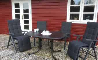 The 65sqm, barrier-free Danish wooden house offers 2 bedrooms, a walk-in shower room, a spacious living and dining room and a comfortably equipped kitchen with an adjoining utility room. Outside there is a terrace with outdoor furniture and a garden lined with hedges.