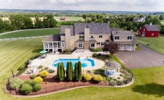 Follow the tree lined driveway toward the quintessential red and white iconic horse barn built by B & D builders. These respected Amish craftsmen have included everything you need to fulfill your country dreams of keeping horses!