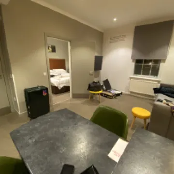 Overall a decent size hotel room for a family of 4 . Could use some instruction manuals for hobs and clean pots. The card key also doesn't work all the time. They request a security deposit from you of about £100 which is not part of the initial booking fee.