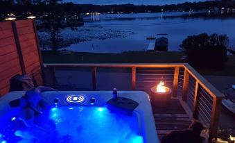 The lake is great for water sports and swimming as well! The house has a three season porch, and a two stage deck that looks out onto the lake. The hot tub is in the front of the house so you can watch the sun set as you relax in the warm water. Very pet and child friendly vacation, the stay comes with 2 kayaks as well as a floating dock great for kids to jump off of. About pets:Pets allowed: dogs and cats (limit 3 total).About checkOut:Check out before 11:00 AM.About children:Children allowed: ages 0-17.About checkIn:Check in after 3:00 PM.About smoking:Smoking is not permitted.About minBookingAge:Minimum age to rent: 21.About events:No events allowed.