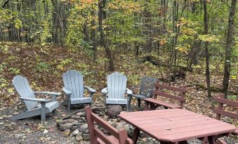 We have a beautiful cabin On 10 acres that border Ricketts Glen State Park. The cabin is only 1/4 mile from the trail head at the foot of the mountain. This state park offers beautiful views year round. Whether you would like to hike the 22 waterfall trails, rent a kayak on Lake Jean or curl up with a good book on the sandy beach of the lake, we have the peace and quiet you have been dreaming about! There is also excellent mountain biking, cross country skiing, snowshoeing, trail running, and hunting. You will enjoy a relaxing outdoor experience at our cabin. We have a comfortable interior with hardwood floors and all the comforts of home including air conditioning. The outside has many sitting areas including a fire ring and covered back porch.